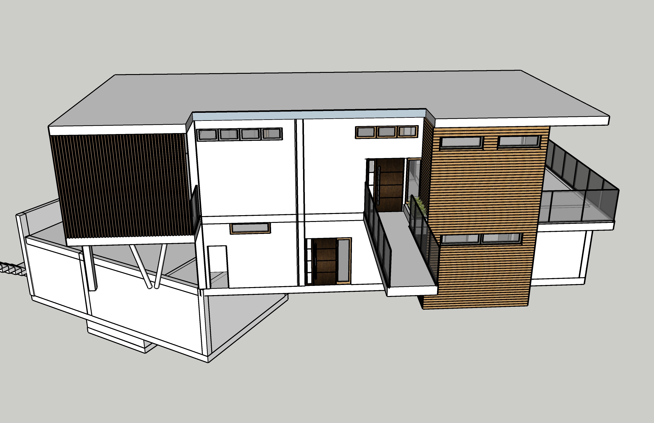 Views of the BuildingNote that the sketches are not showing the latest version of the house! ![]() View from the Southeast ![]() View from the Street (West) ![]() View from the Northeast. |