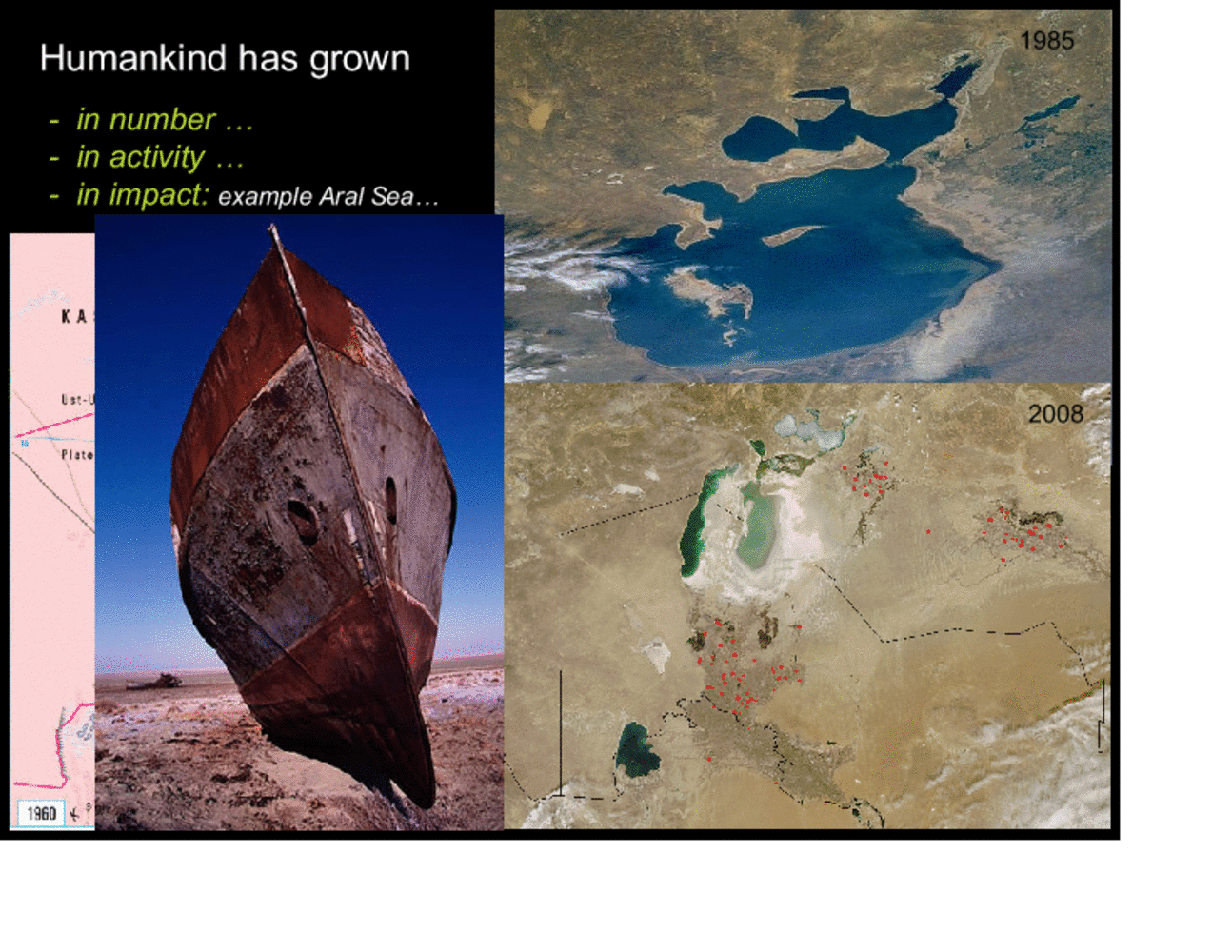 The lake is no longer navigable, ships are rotting as silent warning witnesses of the disaster. |