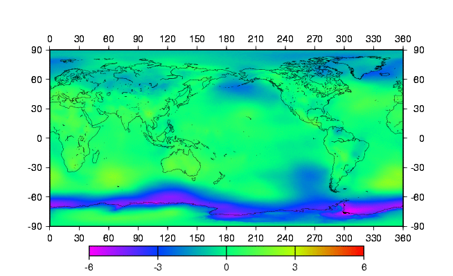 Air pressure reference surfaces at topographic height derived from ERA 40 surface pressure![]() Mean air pressure at topographic height in the interval 1992-2001. The mean is calculated for the 6-hourly samples. For each sample, pressure at topographic height (taken from ETOPO5) is computed from geopotential heights of the ERA 40data set, which is given with a 2.5 degree spatial resolution. Spatial interpolation is linear between the ERA 40 grid points. ![]() Difference of average pressure in 1992-2001 and 1982-1991. The differences are mean in the 1992 window minus mean in the 1982 window. ![]() Difference of average pressure in 1992-2001 and 1972-1981. The differences are mean in the 1992 window minus mean in the 1972 window. ![]() Difference of average pressure in 1992-2001 and 1962-1971. The differences are mean in the 1992 window minus mean in the 1962 window. |